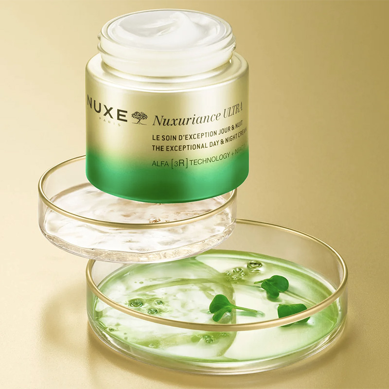 Basandosi su più di 30 anni di Ricerca e Sviluppo e più di 40 brevetti, nel 2025 NUXE rinnova la linea Nuxuriance con una tecnologia unica nei trattamenti anti-età: la Tecnologia Alfa 3R – un trio di ingredienti di origine naturale ( acido ialuronico ed estratti di Alfalfa e di Hemerocallis) con un’efficacia comparabile al retinolo su 3 livelli di azione sulla pelle, per offrire una correzione globale dei principali segni dell’età.