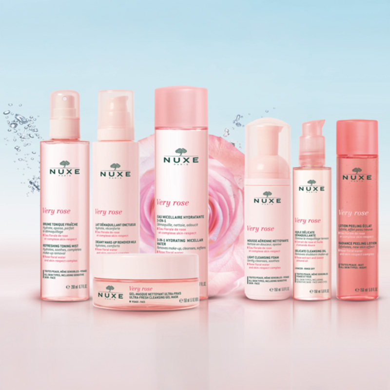 La linea completa di detergenti e struccanti viso e occhi VERY ROSE unisce l’acqua di rose dalle proprietà lenitive a un complesso brevettato di origine vegetale al 100% per pulire delicatamente la pelle garantendovi l’equilibrio della barriera cutanea.