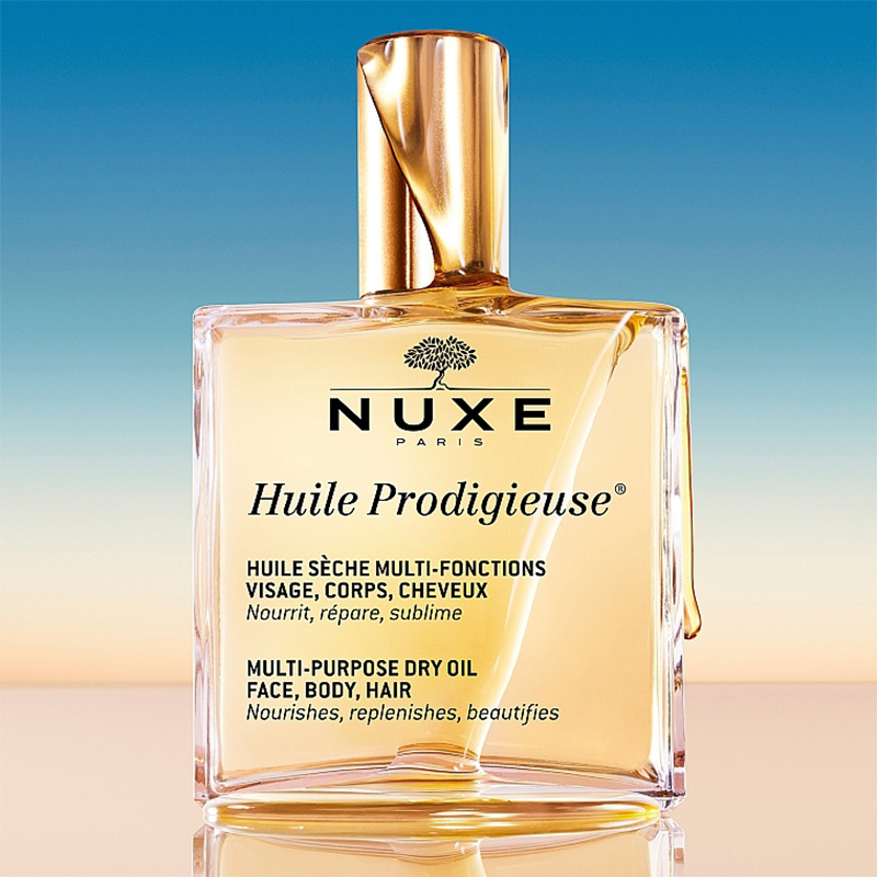 Huile Prodigieuse Nuxe nasce nel 1991 e in brevissimo tempo diventa il prodotto cult del brand; numero 1 nelle farmacie francesi come la soluzione unica per idratare in profondità, nutrire ed esaltare la bellezza del viso, corpo e capelli in un solo gesto: è un olio secco con un rapidissimo assorbimento cutaneo senza traccia, che lascia la pelle morbida, elastica e avvolta in una profumazione delicata grazie alla fragranza degli estratti presenti nella formulazione.